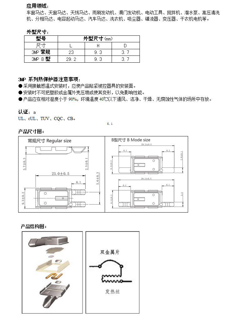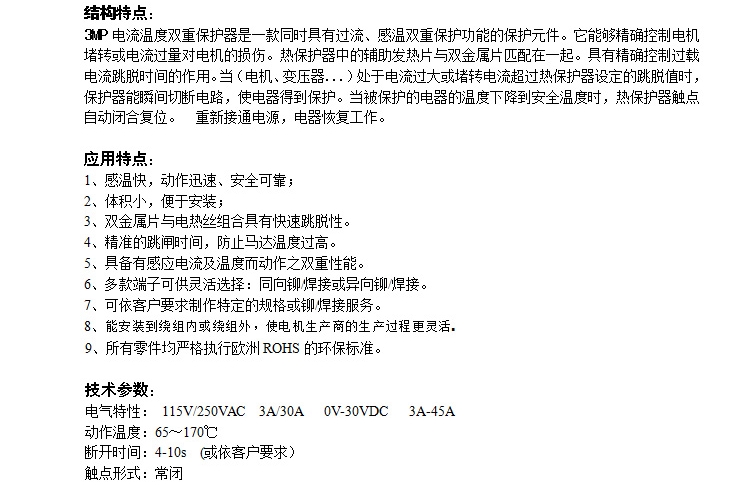 - 3MP系列熱保護器